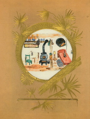 her parlour stove penning Stewart's adventures, reading,